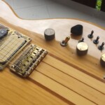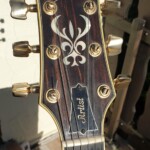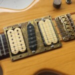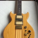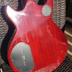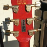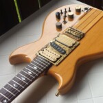 It’s a great guitar with neck through body, 24 frets, 2 DiMarzio Super Distortion Humbuckers (Bridge PU replaced with a Bill Lawrence, Single coil middle pickup added to make it a little like Jerry Garcia’s ‘Wolf’), coil switching and active electronics (a booster, no EQ) – the ‘Poor Man’s Alembic’ 😉