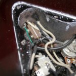 The guitar also has (or had, just have pics) an active electronic. On the back of the guitar you see a battery compartment which also looks genuine. Unlike on the AR500 or MC500 it’s directly above the rear strap button.